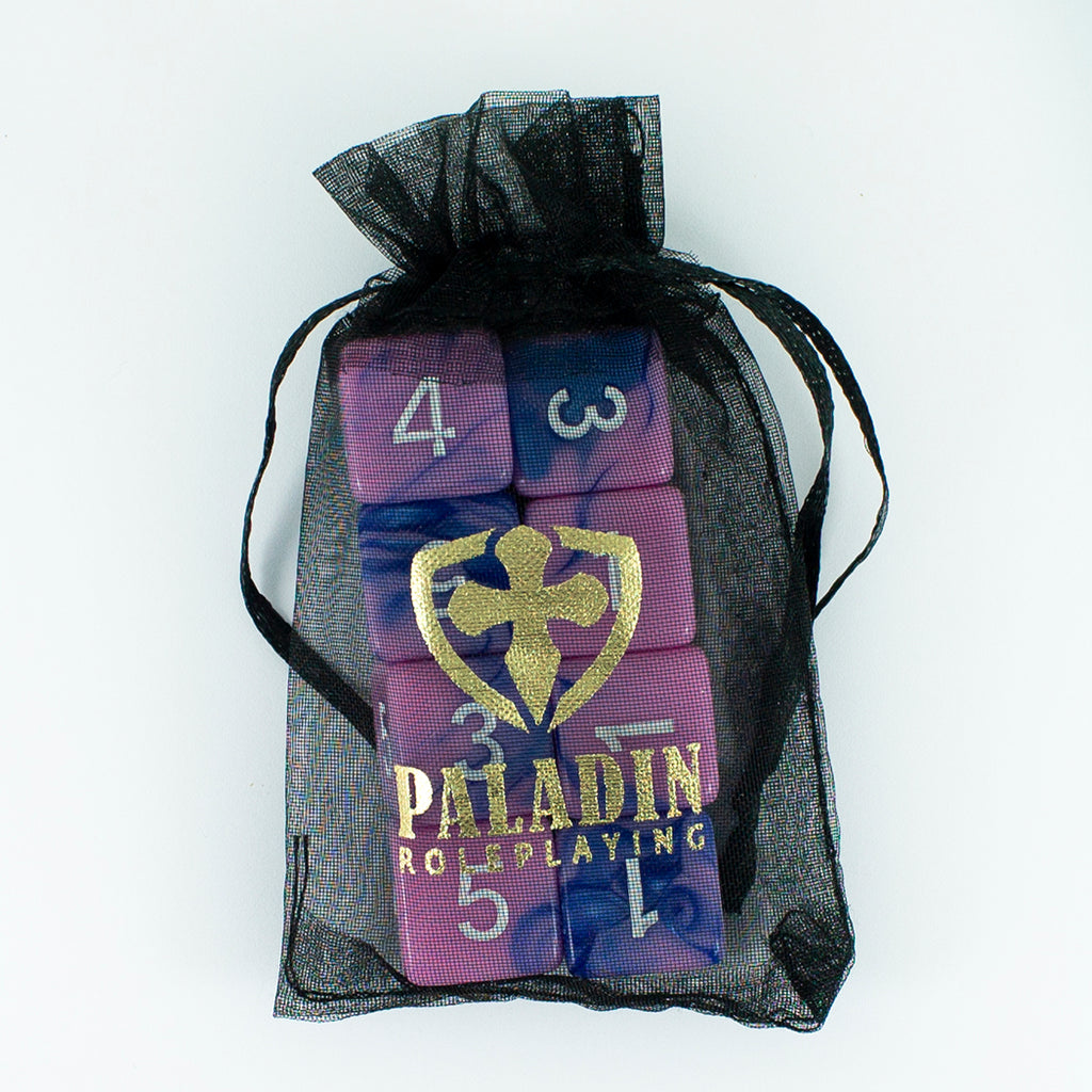 Home › Signature Dice: Our Signature Bicolor Marble RPG Dice Sets › 'Celestial Dream' Pink and Blue Marble 8 D6 Dice Set