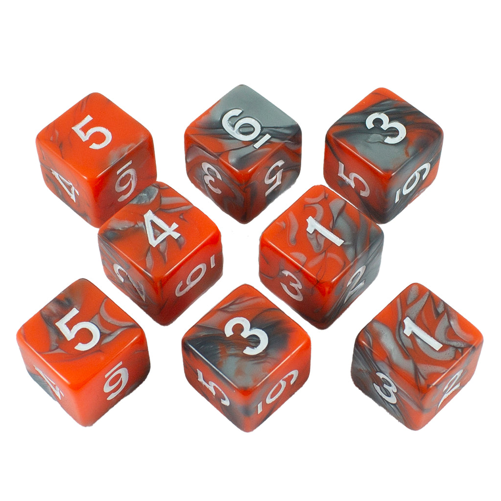 'Magma' Orange and Grey Marble 8 D6 Dice Set