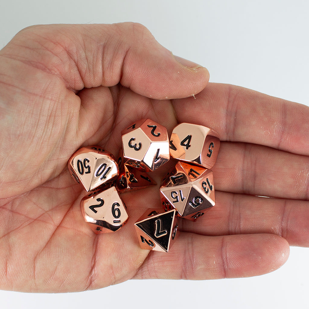 Get your hands on our brand new Copper Metal RPG Dice Set or our jumbo Solid Bone Dice Set (or both!)